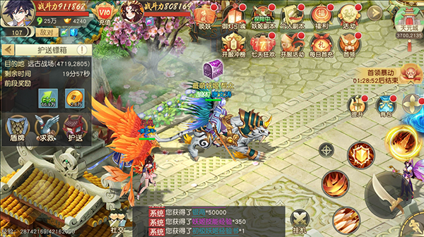 在完成第一阶段,后进入自由PK区域。因为存在一定风险,会被劫,会被打,所以安全通过就会获取更多的奖励喔。护送过程中可向在线好友及帮派成员发送求救保护,同意保护即会成为保护者。
